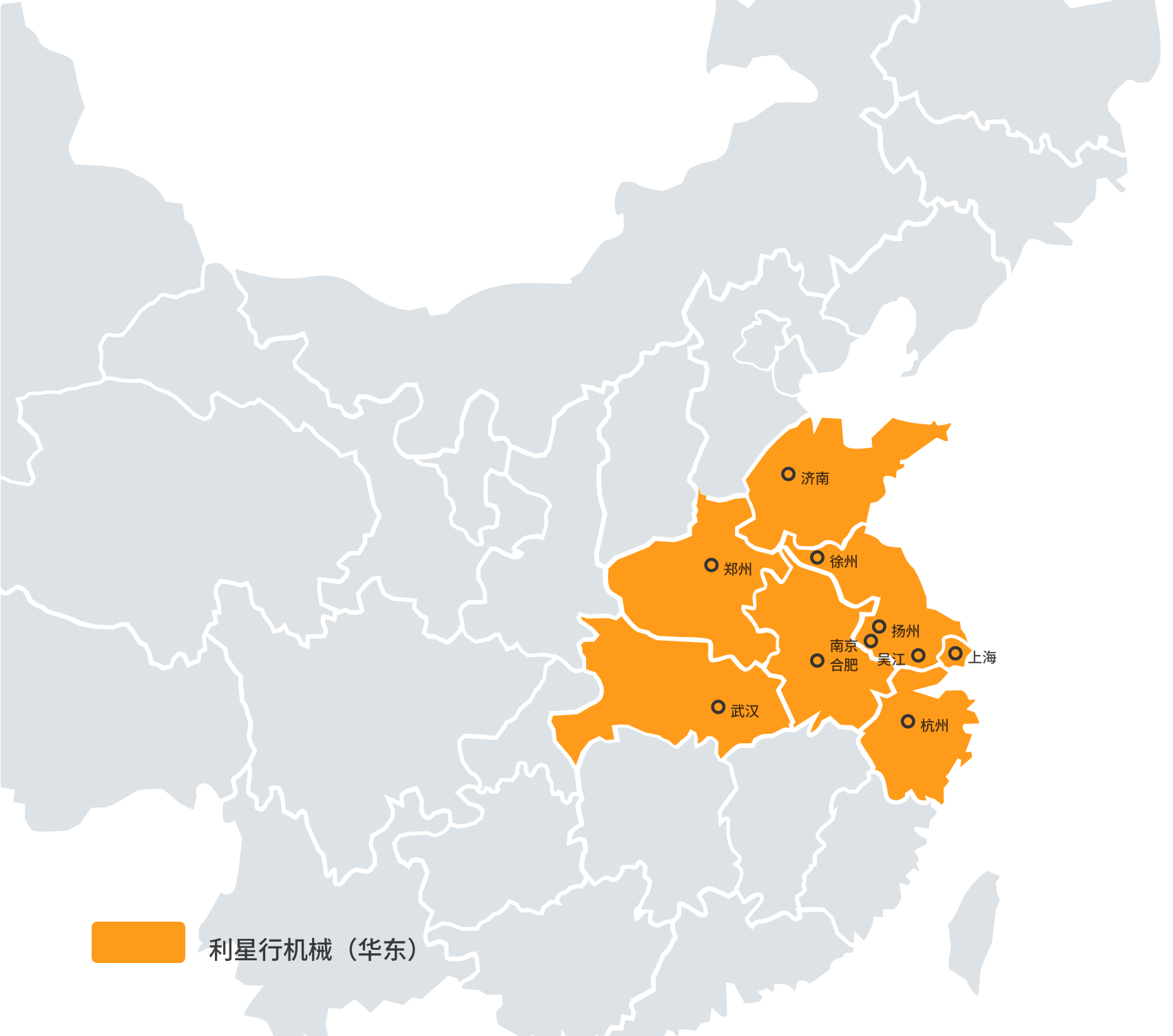 安徽、湖北、河南、江蘇、山東、上海、浙江,7個省級服務中心,22個分公司,以及53個服務點,提供零件、維修、咨詢及新舊大小租等一站式相關服務,有超過700人的售后服務團隊為您的設備保駕護航。