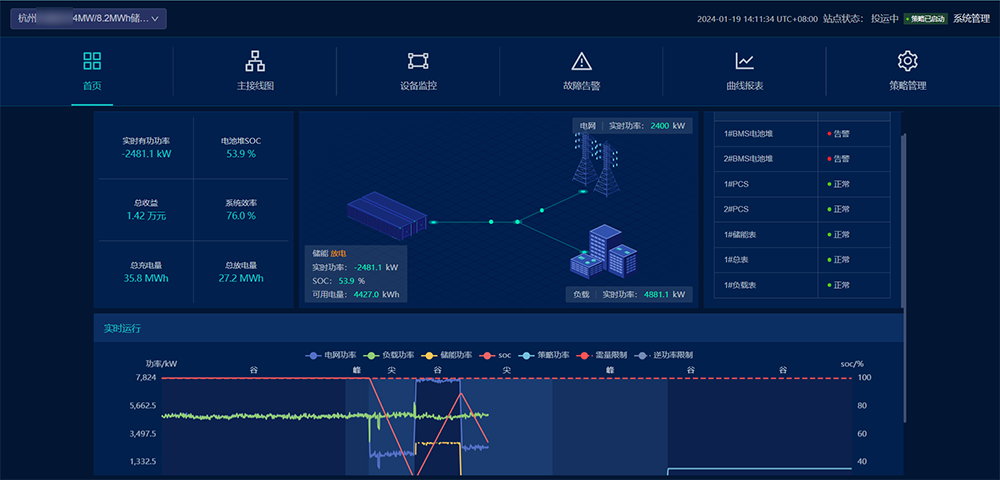 JIUYOU.COM九游(中國能量管理系統EMS采用智能策略模式,實時監測儲能電站、用戶負荷、用戶入戶總表的實時功率,整合功率曲線進行智能分析,實時下發策略曲線,實現對儲能的最優經濟充放,同時在線實時檢測,根據用戶負荷情況實現儲能電站逆功率保護(防逆流保護)和需量控制,確保電站不會超變壓器總負荷運行及推高用戶用電需量費。