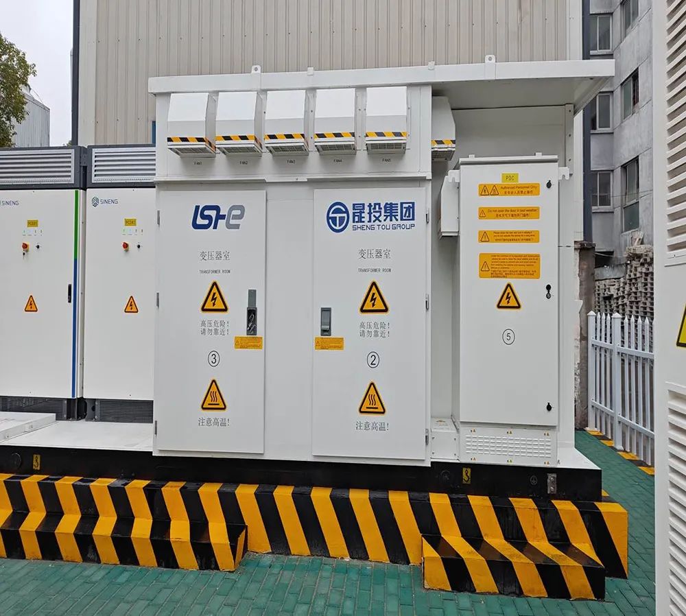 電池系統分為兩堆,每堆11個電池柜LSHe-372L并聯接入匯流柜,每個電池柜由8個液冷電池包組成。另外還配有消防、液冷、溫濕度檢測等設備。