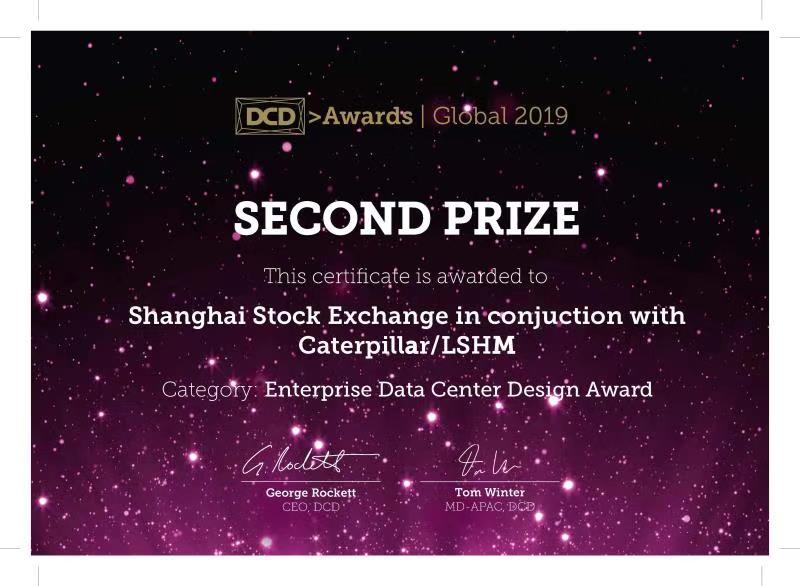 在12月5日的北京DCD峰會上,上海上證數據服務有限責任公司--技術管理部副總監穆中標先生和卡特彼勒(中國)投資有限公司--卡特彼勒電力北亞區區域銷售經理黃黎明先生共同領取了2019-DCD全球企業數據中心入圍獎,非常有幸的從全球300個項目中脫穎而出,入圍了此獎項 。