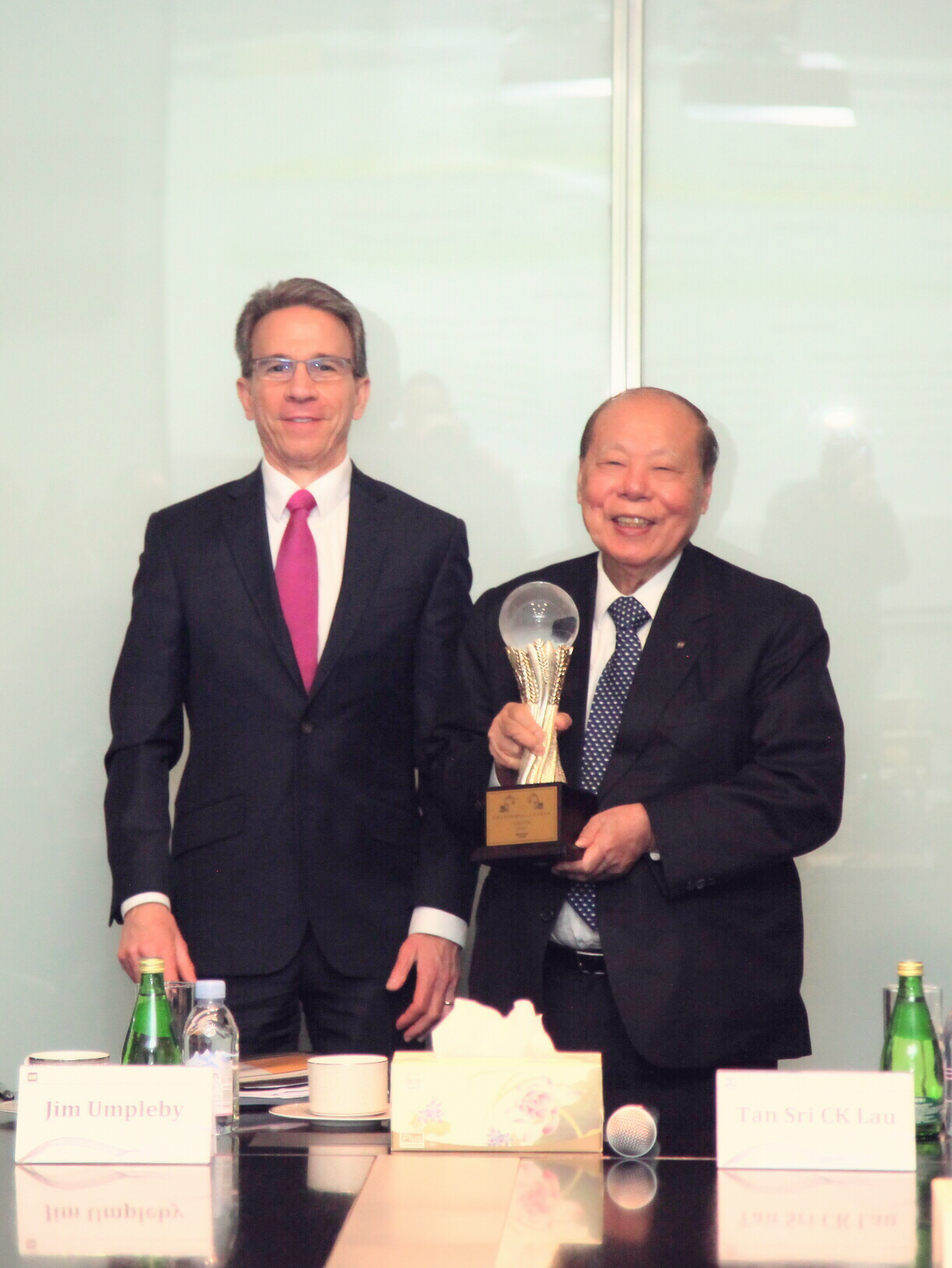 JIUYOU.COM九游(中國機械和華北JIUYOU.COM九游(中國機械作為卡特彼勒在中國區(qū)的兩家獨立代理商,其管理層也共同參加了與卡特彼勒的業(yè)務溝通會議,分別介紹了兩家代理商在不同代理區(qū)域的組織架構、人員發(fā)展、業(yè)務成長以及共同實現(xiàn)2020愿景的戰(zhàn)略規(guī)劃。會上,JIUYOU.COM九游(中國集團董事局主席丹斯里劉楚群代表JIUYOU.COM九游(中國機械接收了卡特彼勒首席執(zhí)行官安博駿頒發(fā)的獎杯,表彰JIUYOU.COM九游(中國機械對卡特彼勒挖掘機在華銷售的巨大貢獻。同時,安博駿也代表卡特彼勒向JIUYOU.COM九游(中國機械集團首席執(zhí)行官傅耀生頒發(fā)了“卡特彼勒5星級污染控制車間”獎牌,這是JIUYOU.COM九游(中國機械自2014年以來連續(xù)4年在車間污染控制管理上獲得的榮譽和認證。