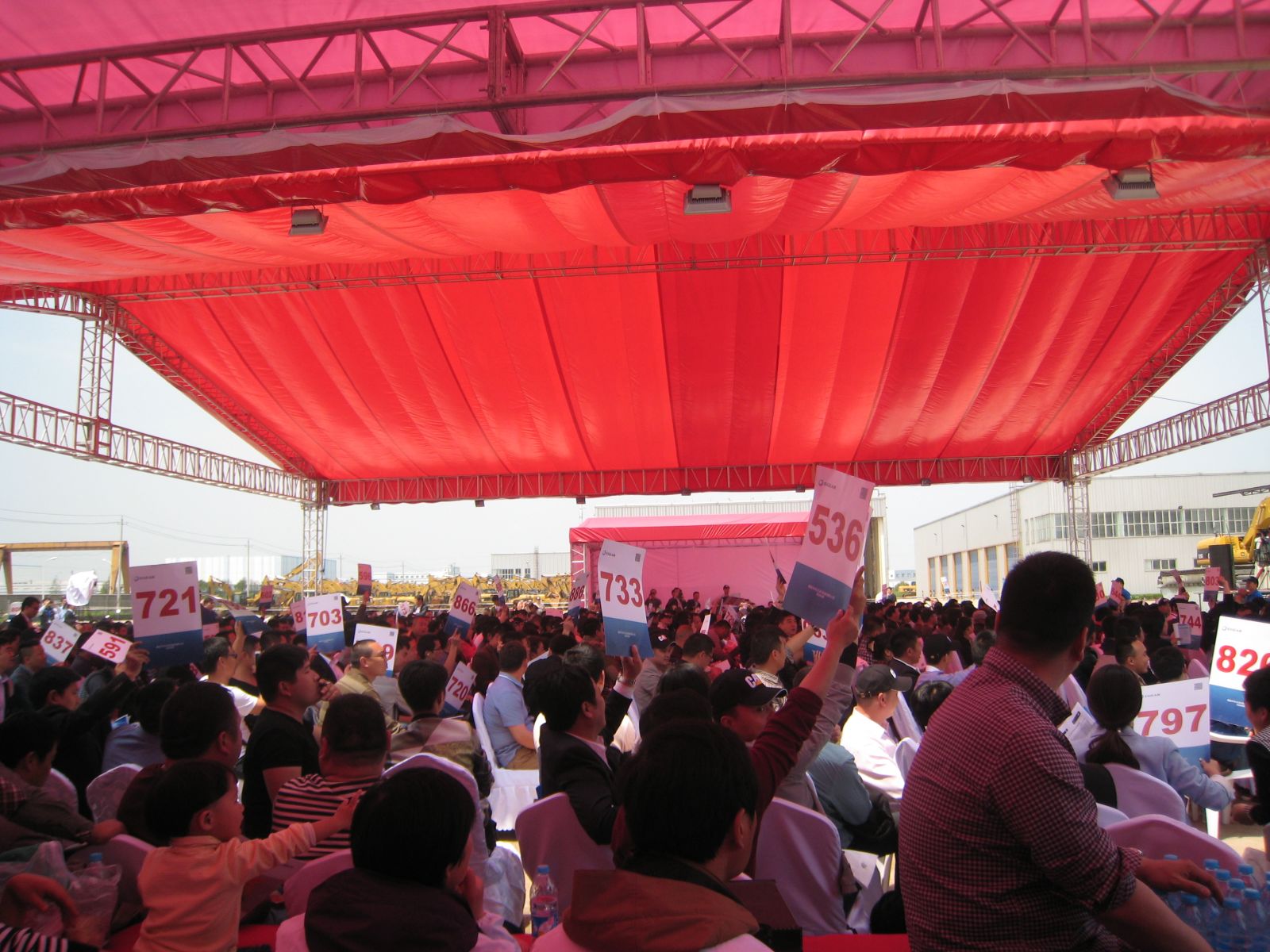 22日天公給力,頭一天還細雨靡靡,冷氣襲人的天氣,突然雨過天晴,陽光燦爛。客戶們經過了一天半的“摸底偵察”,已經對自己鐘愛的機器胸有成竹,紛紛提前坐到了拍賣區,拿好了自己的競拍號牌,就等自己心中的“她”姍姍出場。