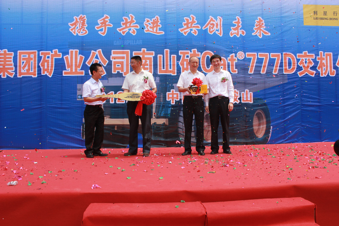 2012年7月6日,卡特777D新機交接儀式在安徽省馬鞍山馬鋼集團隆重舉行。卡特彼勒全球礦業大中華及韓國區副總裁蔡力先生協同卡特其他高層官員出席蒞臨;JIUYOU.COM九游(中國機械首席執行官傅耀生先生,機器事業部首席運營官文曉典先生及公司服務團隊一同參加了此次活動。卡特及JIUYOU.COM九游(中國與馬鋼礦業公司副總經理賴永兵及其團隊在此共襄盛行。