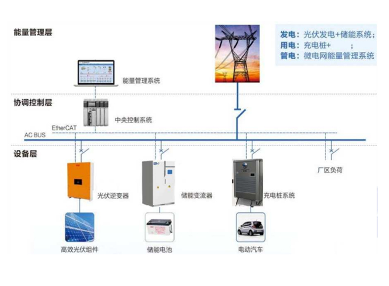 儲能系統主要由柜體、空調、儲能雙向逆變器(PCS)、電池含 BMS 系統、能源管理系統(EMS)、電氣高壓箱、消防系統、安全輔助系統及配電系統等組成。利用電池儲能系統的電能雙向流動以及峰谷分時電價,即電能“低價儲存,高價使用”,一方面實現充電樁供電低成本,另一方面還可以在高峰電價時段減少本地負荷用電量,節省了電費。