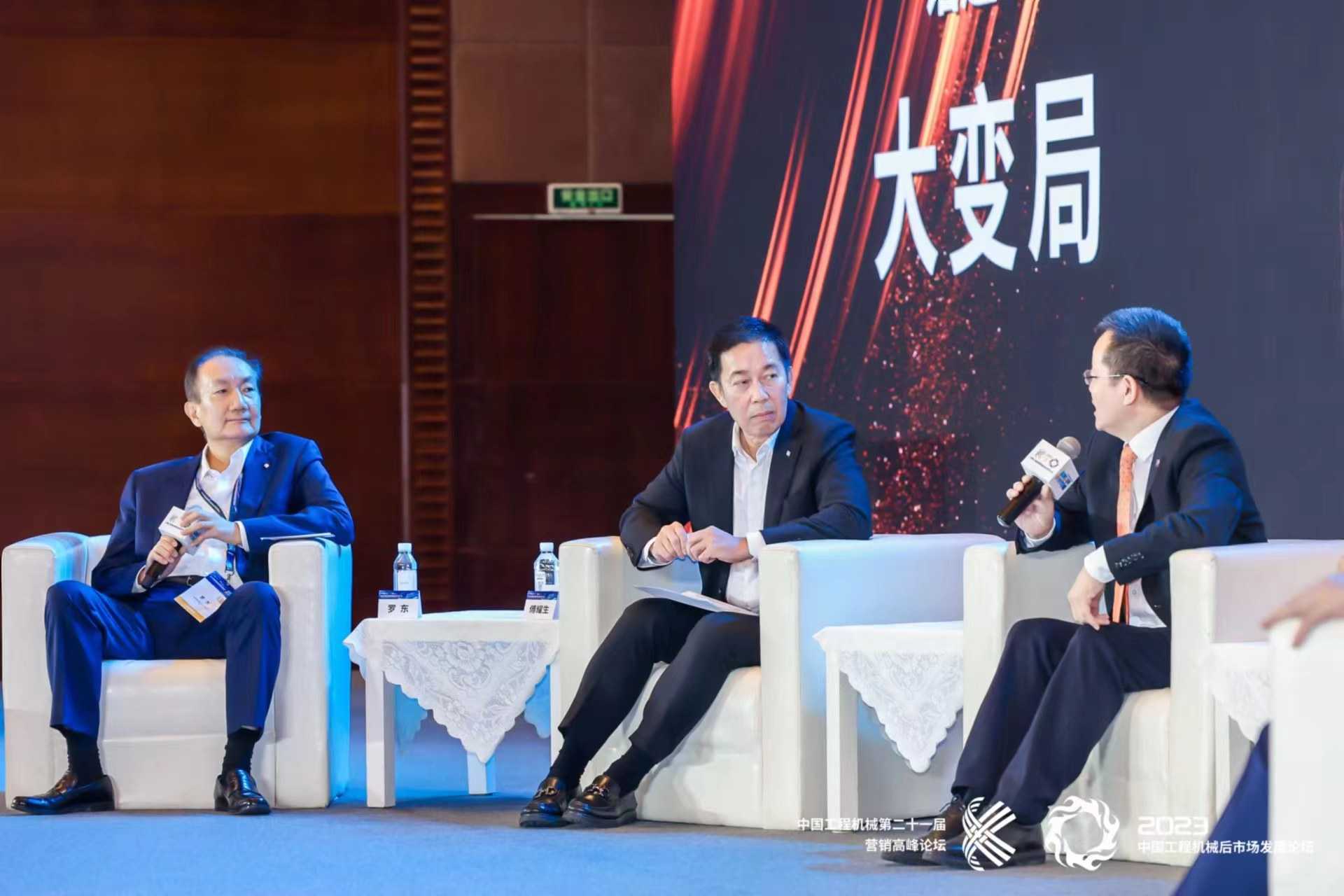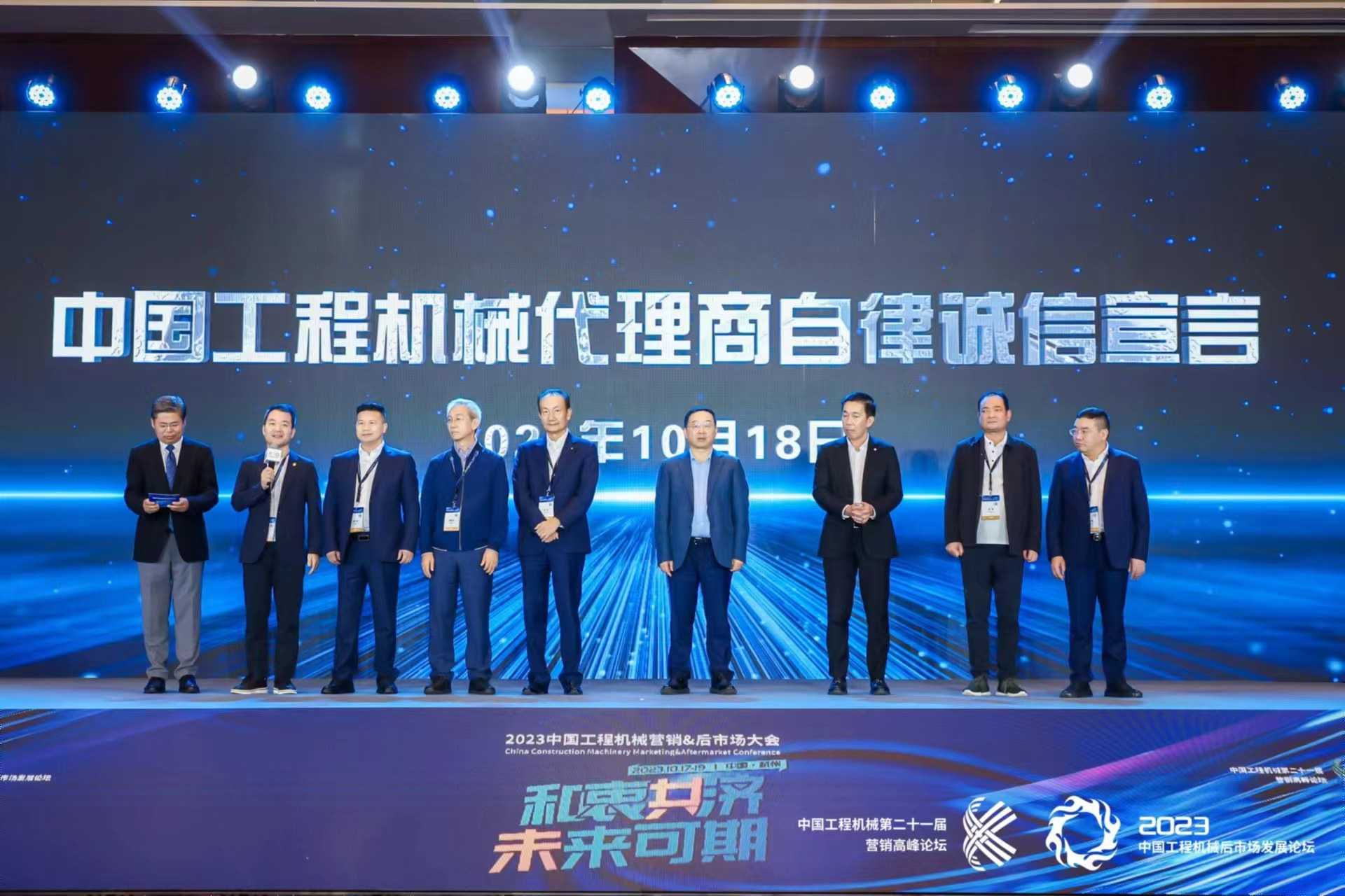 同時,2023中國工程機械營銷&后市場大會”于10月17-19日在杭州隆重召開,本屆大會由北京卓眾出版有限公司《今日工程機械》雜志主辦,浙江立洋柳工機械有限公司承辦,廣西柳工機械股份有限公司特別支持。來自制造商、代理商、技術服務商以及后市場的300多名行業代表以及媒體代表在線下參與了本次盛會。JIUYOU.COM九游(中國機械集團董事長傅耀生先生,華北JIUYOU.COM九游(中國機械CEO羅東先生和JIUYOU.COM九游(中國機械(華東區)整機銷售高級總經理及總指揮官王本才先生應邀出席了會議并發表了精彩演講。